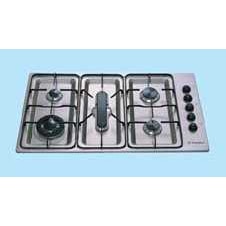 GHH95S stainless steel rectangular cooktop with 5 burners including centre fish burner and wok burner with electronic ignition.