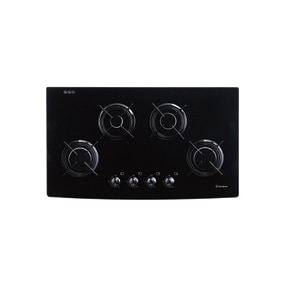 GHL44K black, rectangular glass cooktop with 4 burners, electronic ignition and individual trivets.