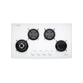 GHL46W white, rectangular toughened glass cooktop, with electronic ignition and 4 gas burners including a triple ring wok burner.