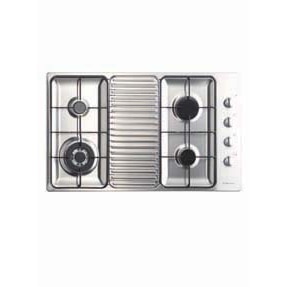 GHL92S stainless steel rectangular cooktop with 4 burners including wok burner with electronic ignition and centre pot stand.