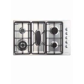 GHL95S stainless steel rectangular cooktop with 5 burners including centre fish burner and wok burner with electronic ignition.