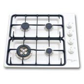 GHVJ765W white square cooktop with 4 burners including wok burner with electronic ignition.