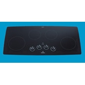 A rectangular, trimless ceramic cooktop with four quick response elements featuring temperature limiters and hot surface indicator..