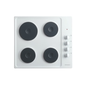 PHL255W white, square, electric cooktop with a durable enamel surface and four solid hotplates.