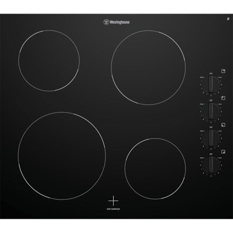 60cm 4 zone ceramic cooktop with residual heat indicator, 9 power levels and easy clean ceramic surface.