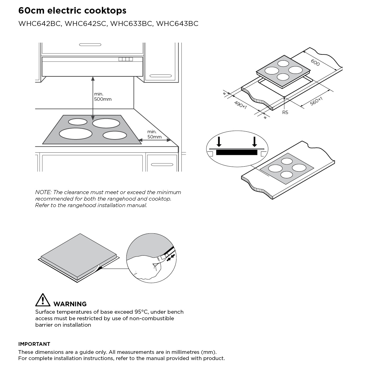 60cm 4 zone ceramic cooktop with triple variable zone, touch controls, Pause function, QuickCook Timer and residual heat indicator.