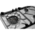 90cm 5 burner stainless steel gas cooktop with a high powered, intense 19 MJ/h wok burner, dual valve flame control and cast iron trivets.