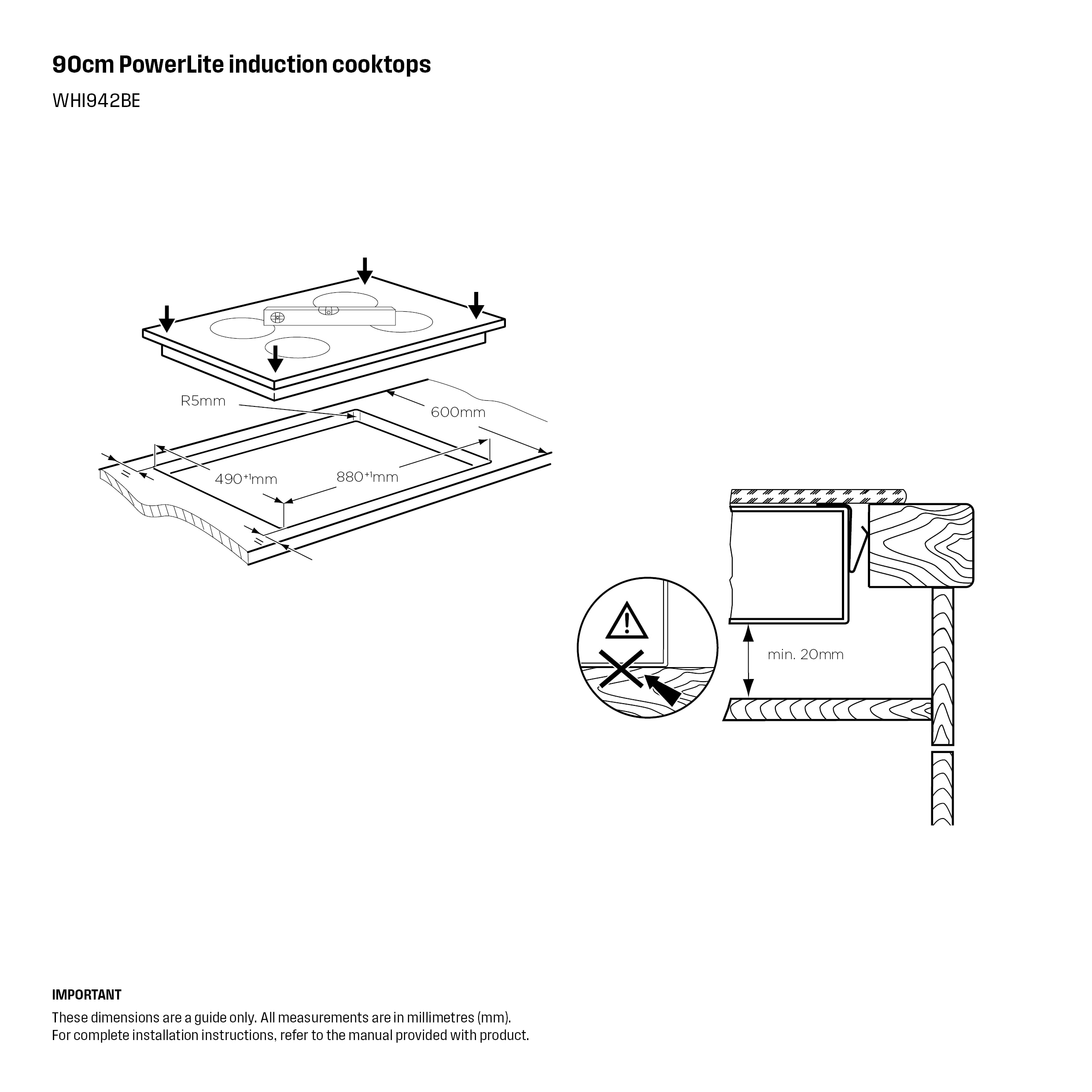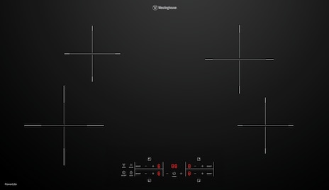 90cm 4 zone PowerLite, a low current enabled induction cooktop, makes upgrading easy. It comes with Hob2Hood, PowerBoost and touch slide controls.