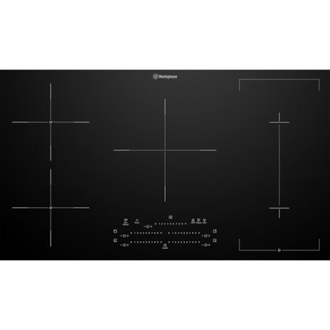 90cm 5 zone induction cooktop with BoilProtect (2 zones), MaxiZone, Bridge Zone, Hob2Hood, PowerBoost and touch slide controls.