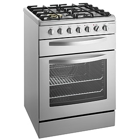 DSN635S 600mm stainless steel electric freestanding integrated cooker with 80 litre gross capacity, gas cooktop with wok burner, and separate grilling compartment.