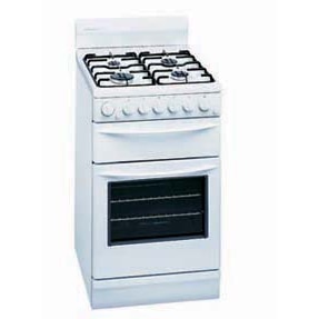 GUJ412W 540mm wide conventional upright cooker, with 4 standard burners, piezo ignition to oven and grill, enamel oven door with window and 60 minute timer.