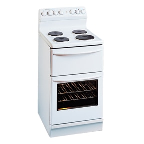 PAJ501RS Kimberley 540mm wide upright range, conventional oven with 4 cerashield solid hotplates, 60 minute timer, lift-up hob and oven light. Exclusive to Retravision.