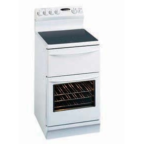 PAJ521W fan forced 540mm upright range with oven light, electronic clock with 24 hour timer, separate grill, durable ceramic cooking surface and lift-off enamel oven door with window.