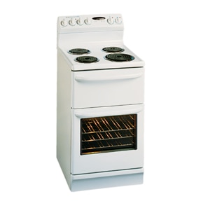 PAJ529B Avondale 540mm upright fan forced oven with 4 radiant coil elements, electronic timer and clock, lift up hob and oven light. Exclusive to Betta Stores.