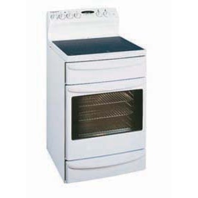 PAJ808W white electric upright with fan forced oven, 600mm in width, separate grill with a ceramic hob, electronic clock with programmable timer and a storage/warming drawer.