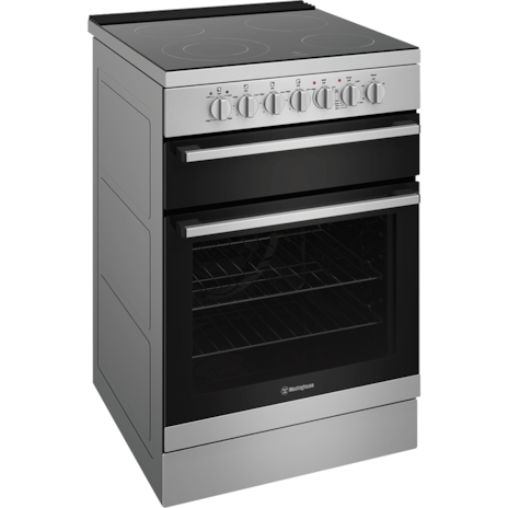 60cm stainless steel electric freestanding oven with separate electric grill, fan forced electric oven, 120 minute timer with ringer and a 4 zone ceramic cooktop with dual zone.