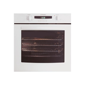 GOL476W 600mm white multifunction gas oven, 82 Litres gross oven capacity, triple glazed oven doors, electronic programmable clock timer.