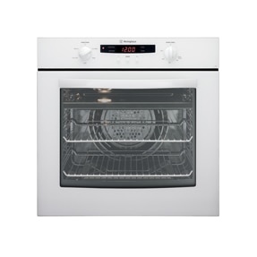 GON476W 600mm white multifunction gas oven with 5 oven functions, electric grill, 80 litres gross capacity, 3 glass door layers