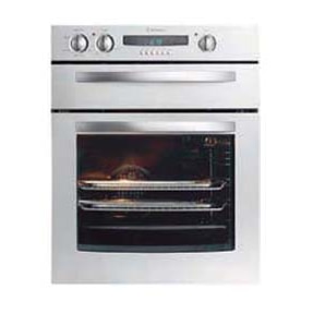 A multifunction, electric, separate grill, underbench wall oven with a stainless steel finish, 5 cooking functions and 6 button programmable clock timer.