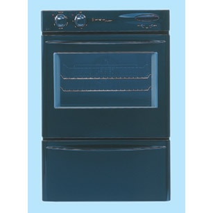 A black,fan forced wall oven with separate grill and electronic time of day timer.