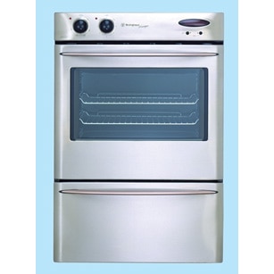 A stainless steel, fan forced electric wall oven with separate grill and electronic time of day timer.