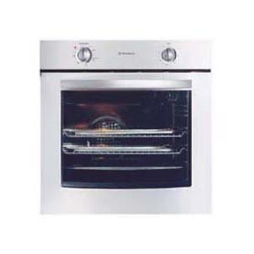 A fan forced, electric, single oven with a stainless steel finish and 2hr auto cut off timer.