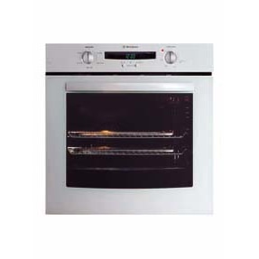 A multifunction, electric, single oven with a stainless steel finish, 5 cooking functions and a two button auto cut off clock timer.