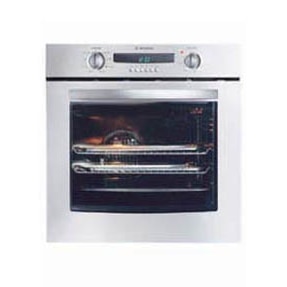 A multifunction, electric, single oven with a stainless steel finish, 8 cooking functions and a 6 button programmable clock timer.