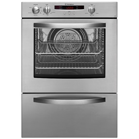 PXN698S multifunction electric wall oven with separate grill, a stainless steel finish, 5 cooking functions in top oven and programmable clock/timer.