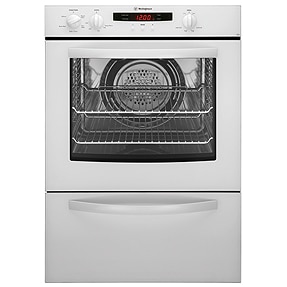 PXN698W multifunction electric wall oven with separate grill, a white finish, 5 cooking functions in top oven and programmable clock/timer.