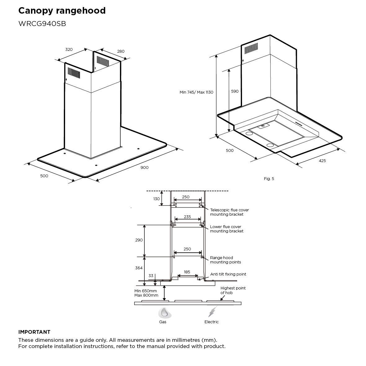 90cm Canopy rangehood, stainless steel