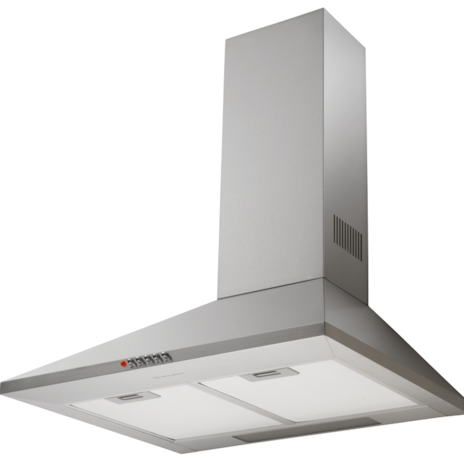 A stainless steel finish, canopy rangehood with 2 fans, 3 speeds, 600mm in width and push button controls.