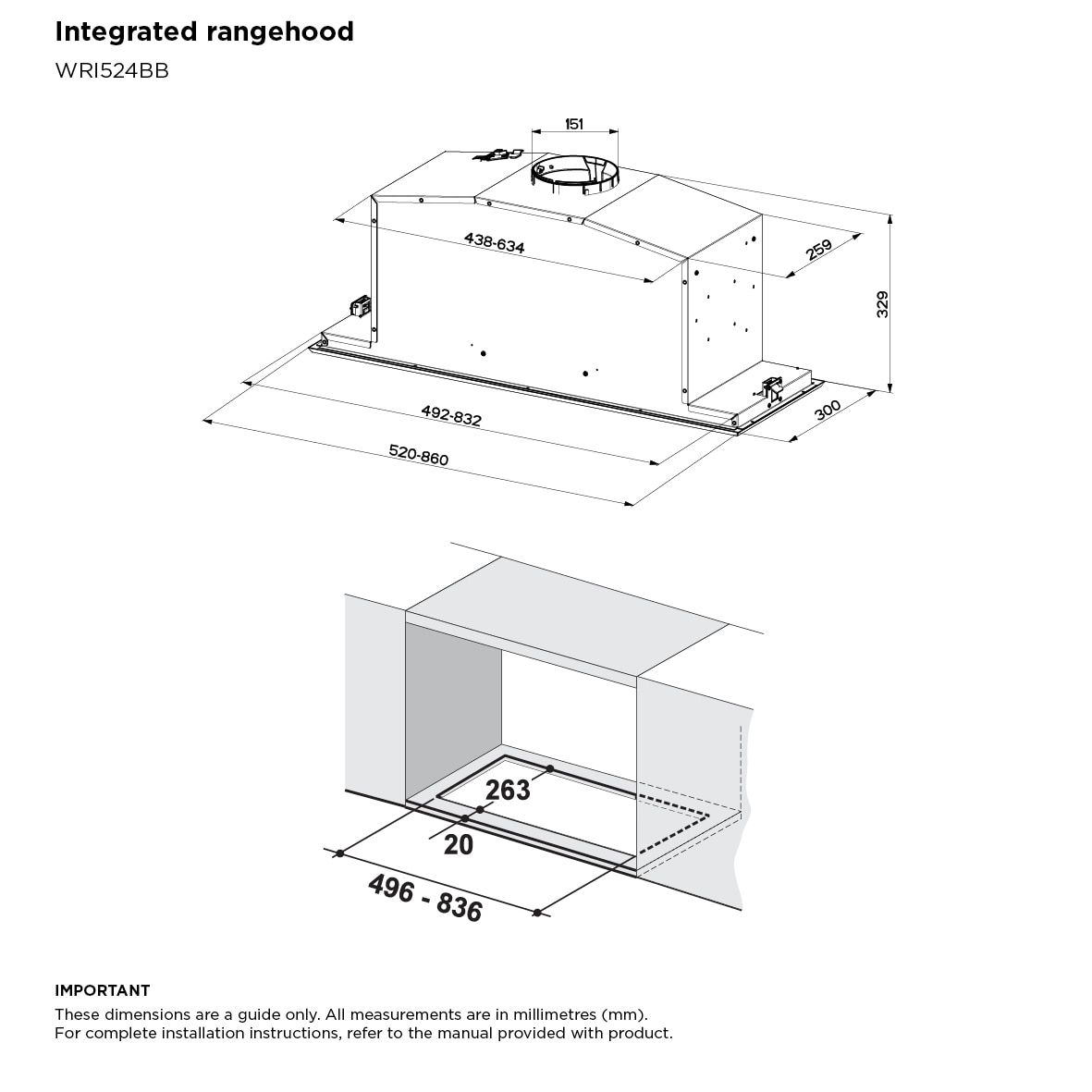 52cm integrated dark stainless rangehood with Hob2Hood enabled, powerful 760m3/hr extraction rate, 3 fan speed plus boost and dishwasher safe filters.
