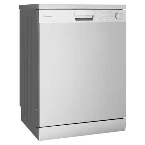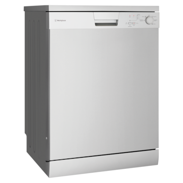 This stainless steel and silver freestanding dishwasher is equipped with a rotary dial and 5 wash programs, including 30 minutes quick wash and water saving ECO wash. Enjoy the added benefits of a half load wash and stable support for tall glasses.