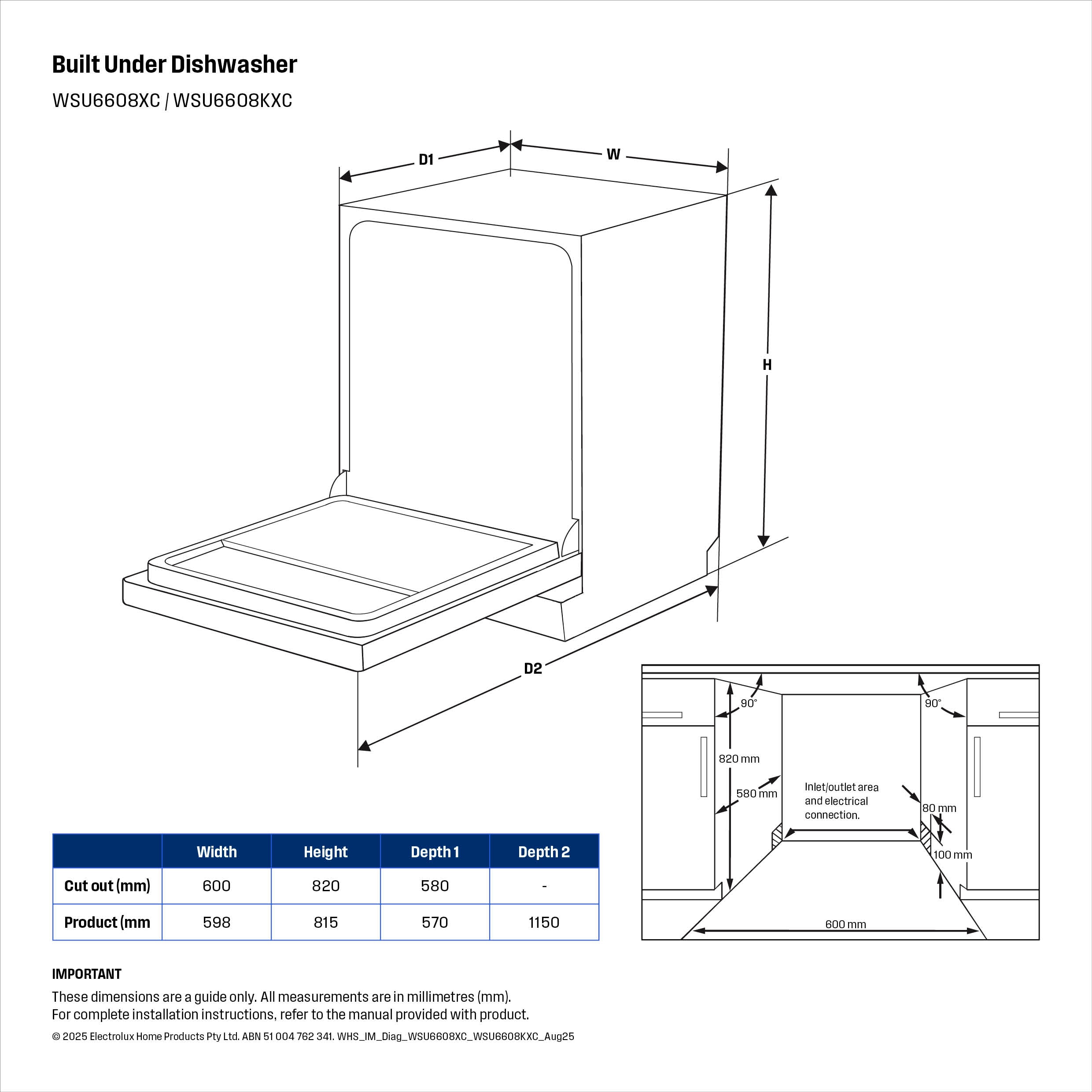 60cm built under dishwasher, dark stainless, with 15 place settings, interior light, 10 wash programs including Auto program, AutoDoor, Zone Wash and Target wash options, adjustable upper basket when loaded and 45dB operation.