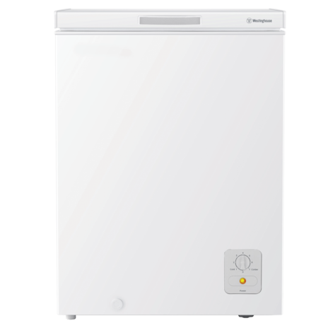 145L chest freezer, white with lightweight, spring-loaded lid removable wire basket, adjustable thermostat & 4-star energy rating