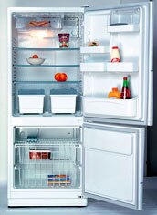 BJ385T 380 litre bottom mount refrigerator/freezer with fast cool zone, twin converta bins and slide out wire freezer baskets.