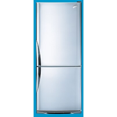 BJ423S 420 litre, frost free, bottom mount refrigerator. It has a horizontal brush stainless steel, a mastermind with electronic controls and glass shelves.