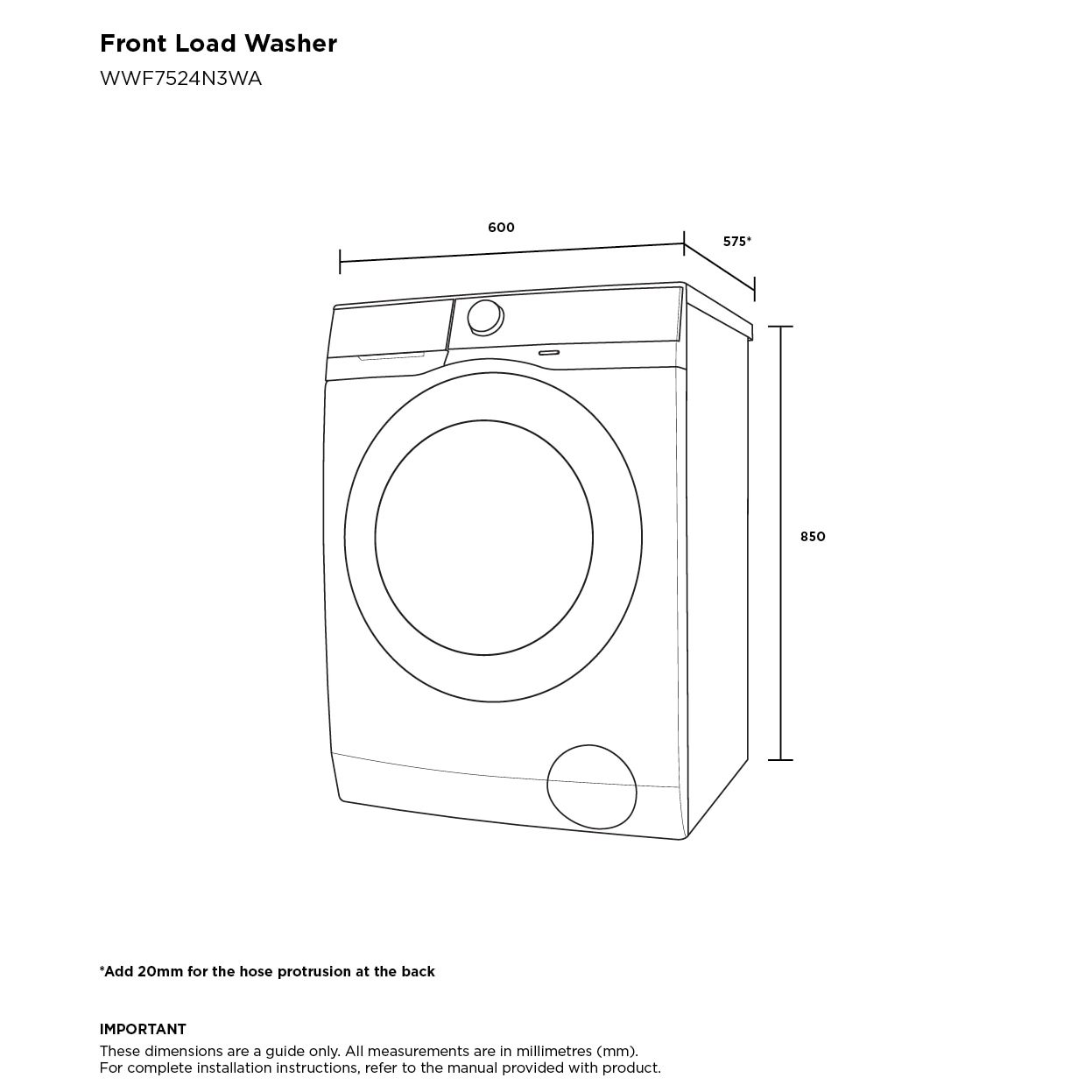 EasyCare 300 series 7.5kg front load washing machine with 1200rpm spin speed, durable motor, Fast wash programs, large drum opening and time remaining display.