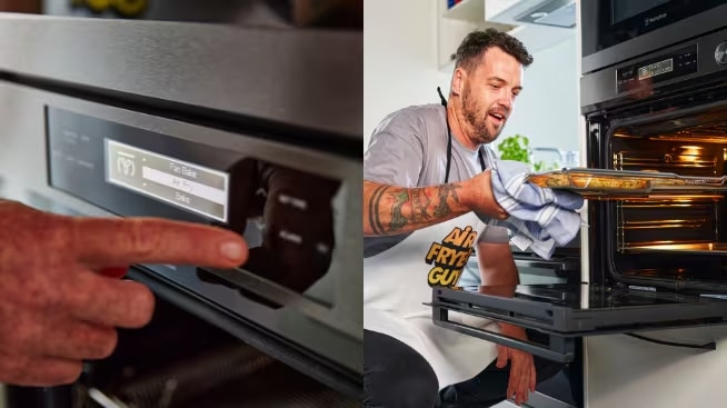 When choosing between a benchtop air fryer or a built-in, the biggest difference is size. The Air Fry Oven is great because it’s much bigger than a regular benchtop air fryer, meaning you can cook bigger portions for larger households, without taking up valuable benchtop space. I also love being able to see my food while it’s cooking, which the in-built option allows. The problem with most benchtop varieties is that you have to physically open the tray to check on your food.